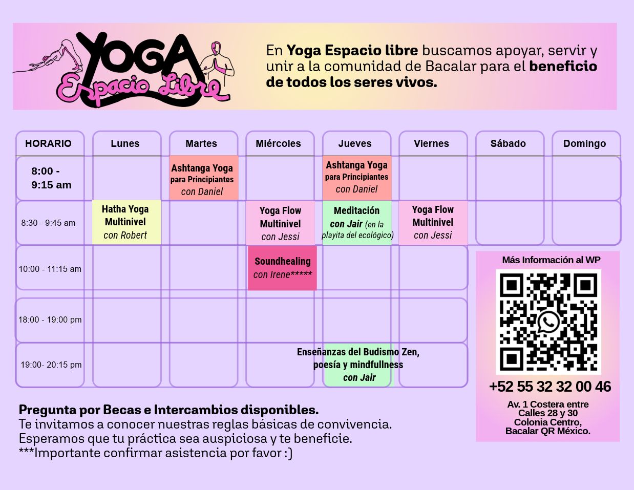 Espacio Libre te invita a las clases semanales que tenemos organizadas en servicio de la comunidad.